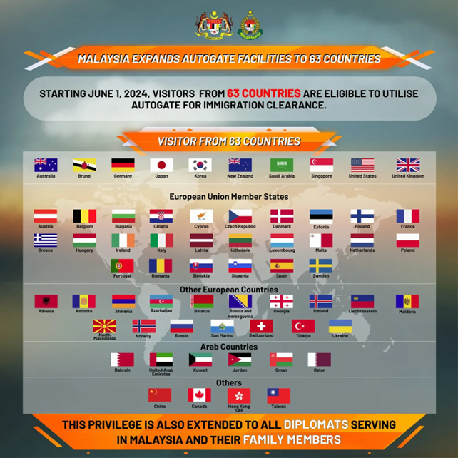List of Countries with Autogate Facilities in KLIA here.